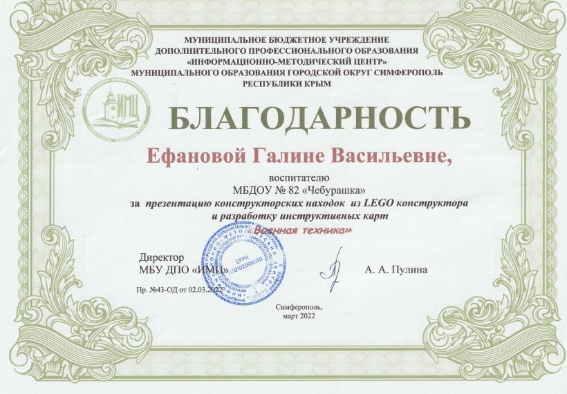 Муниципальное бюджетное дошкольное образовательное учреждение «Детский сад общеразвивающего вида №82 «Чебурашка» муниципального образования городской округ Симферополь Республики Крым