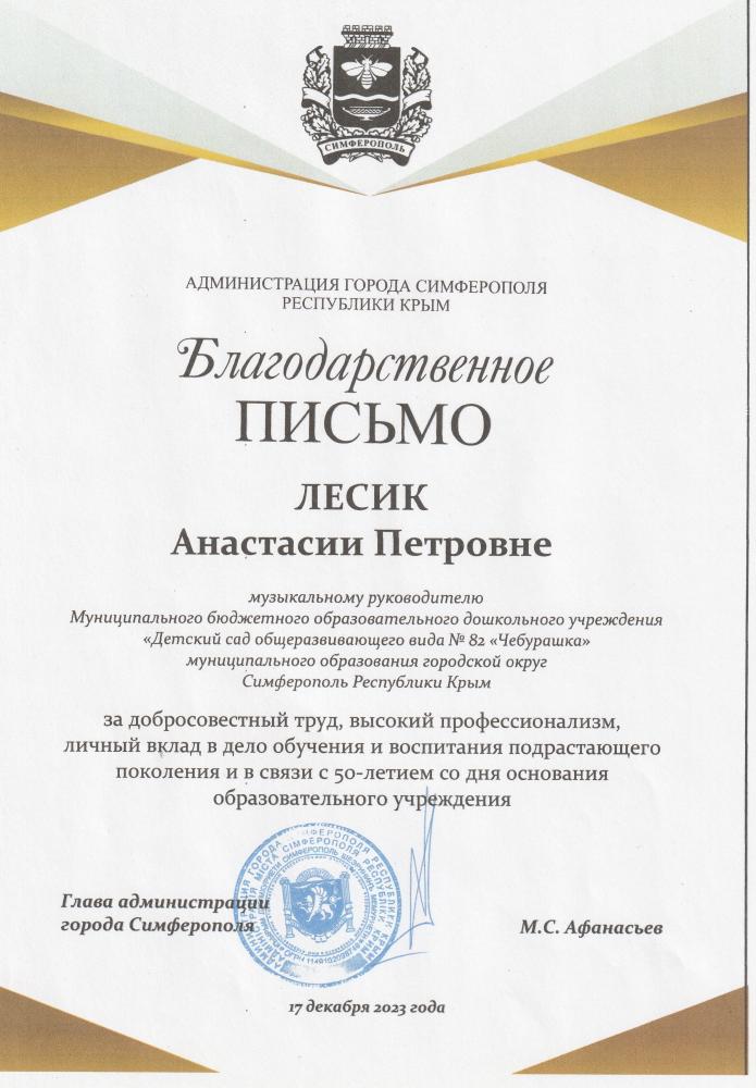 Муниципальное бюджетное дошкольное образовательное учреждение «Детский сад общеразвивающего вида №82 «Чебурашка» муниципального образования городской округ Симферополь Республики Крым